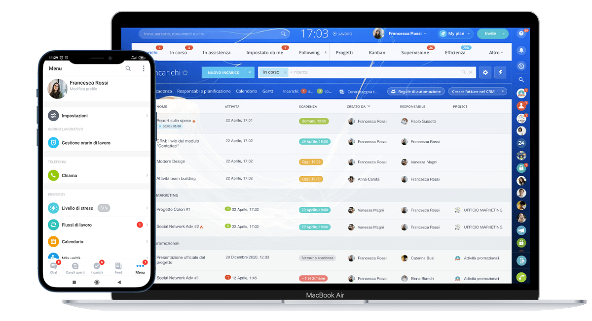 Bitrix24 mette a tua disposizione un’unica piattaforma per gestire: comunicazioni, incarichi e progetti, CRM, contact center, siti web, e molto altro ancora …